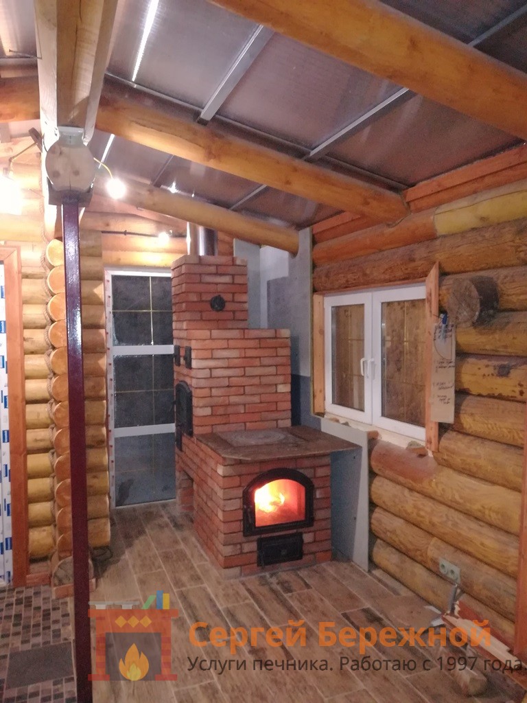 Конструкция выполнена из застаренного полнотелого кирпича. Использована чугунная фурнитура Везувий.