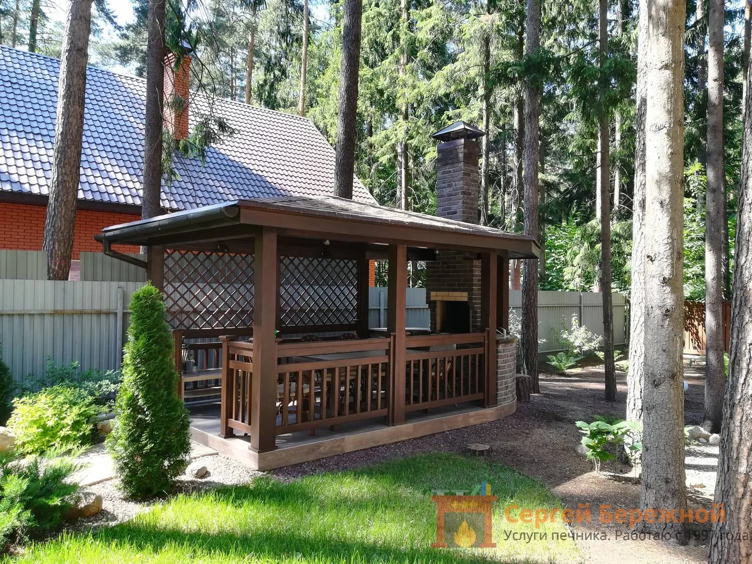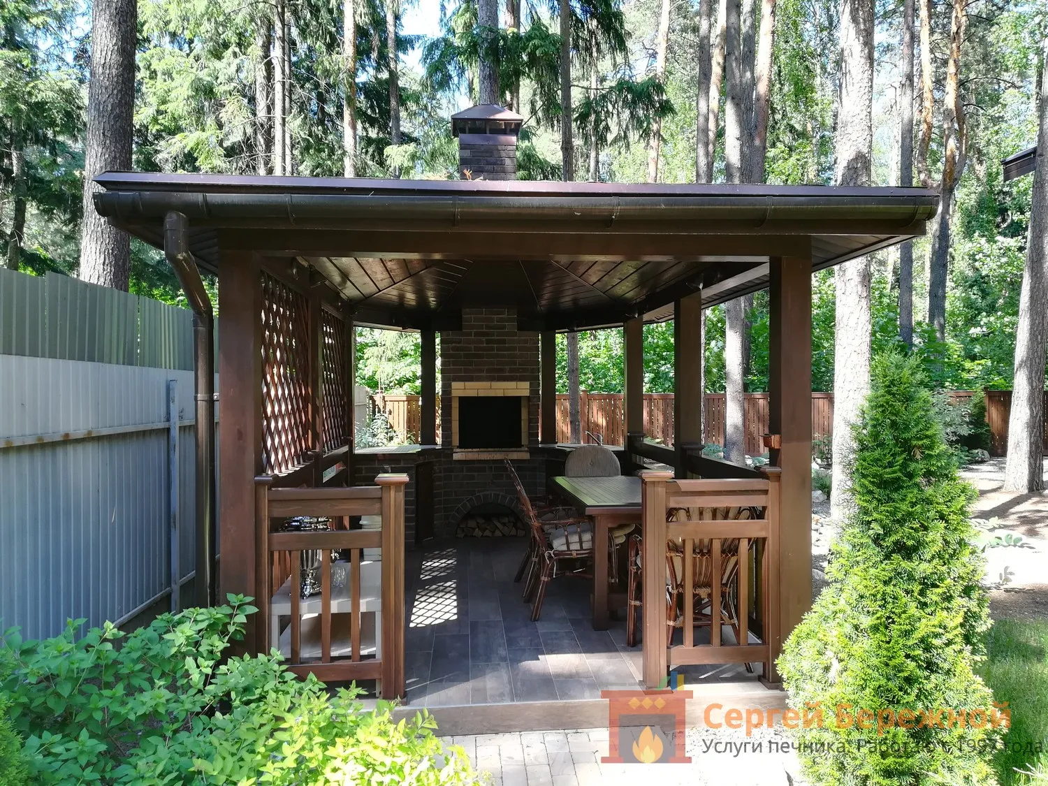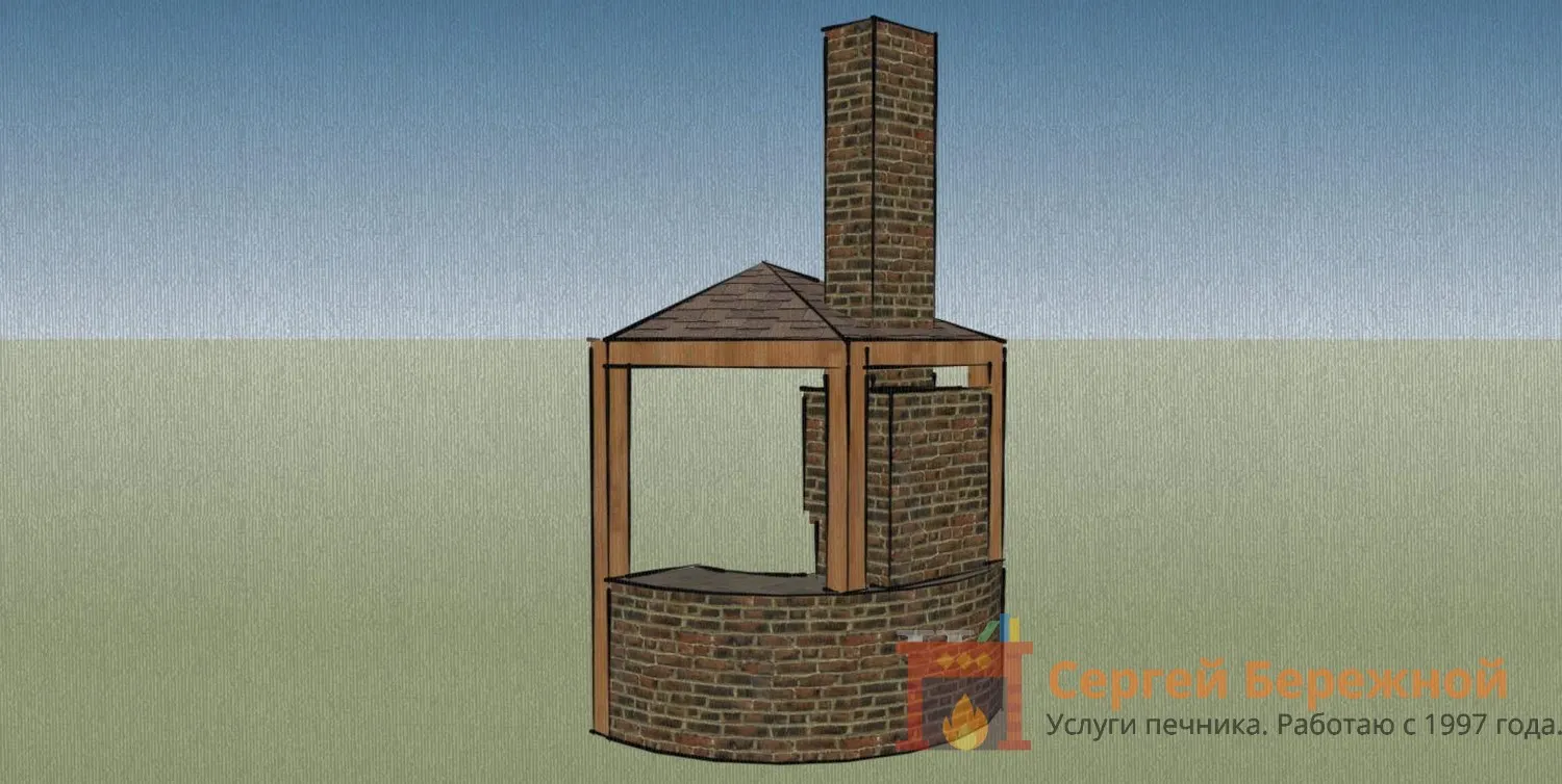 Применен лицевой застаренный кирпич размером 65*110*230 мм. Топливник обложен огнеупорным кирпичом.