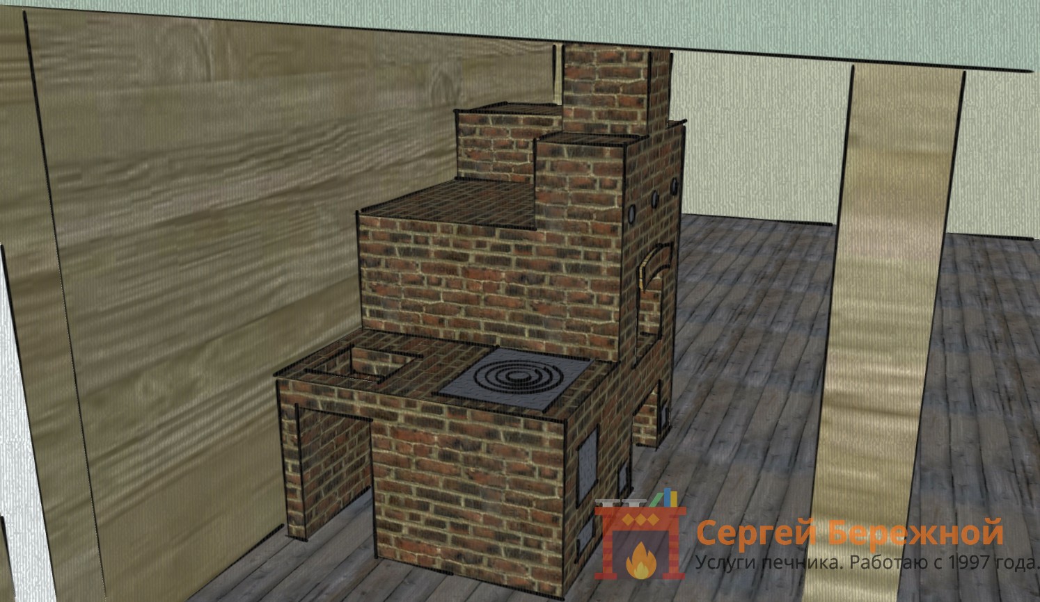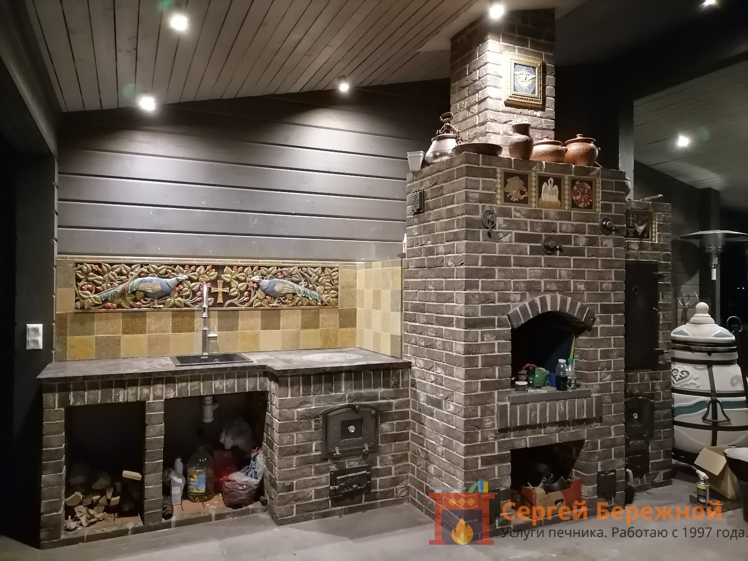 В конструкции выполнена классическая Русская печь, позволяющая готовить блюда русской кухни.
