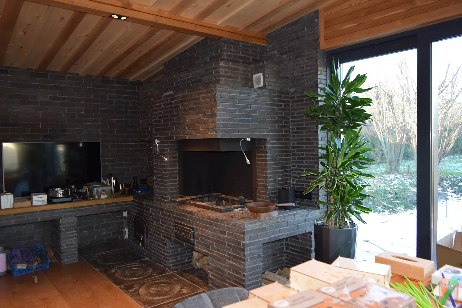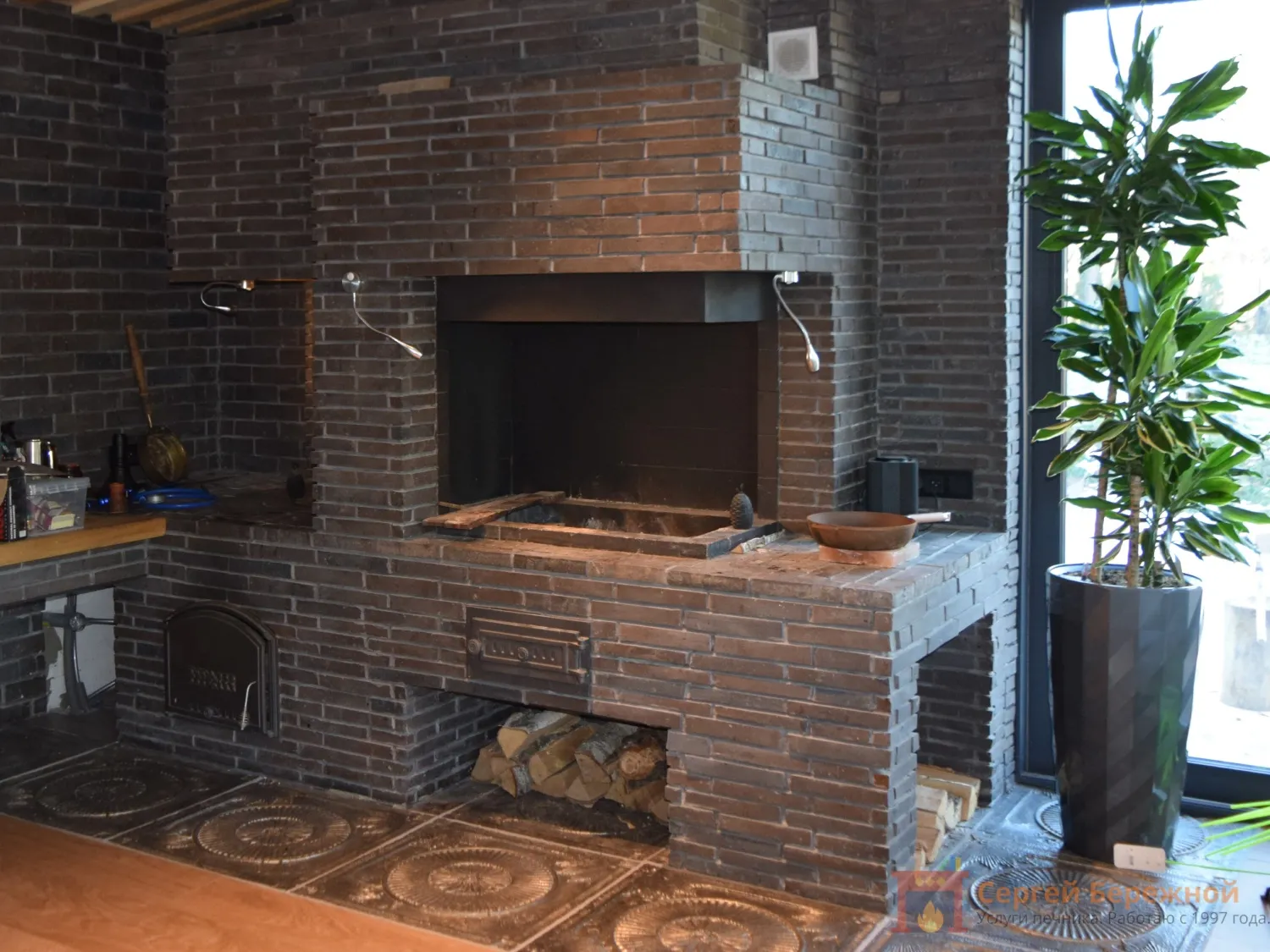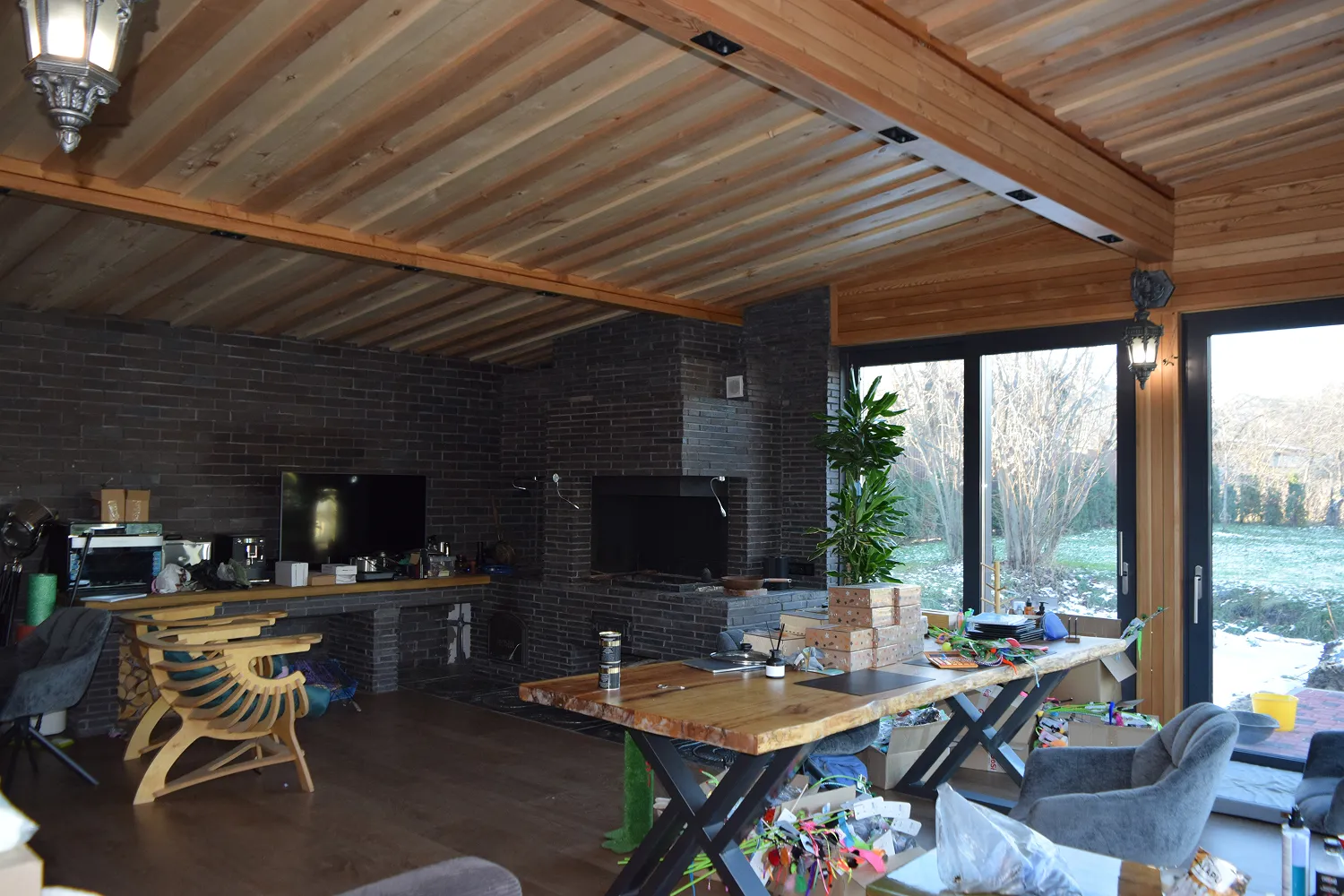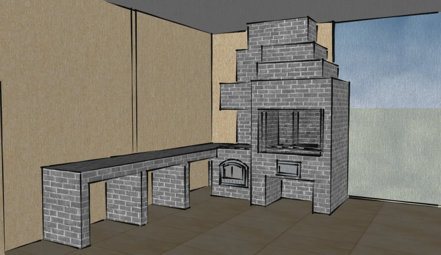 Комплекс барбекю возведён в тёплом помещении, пристроенном к бане.