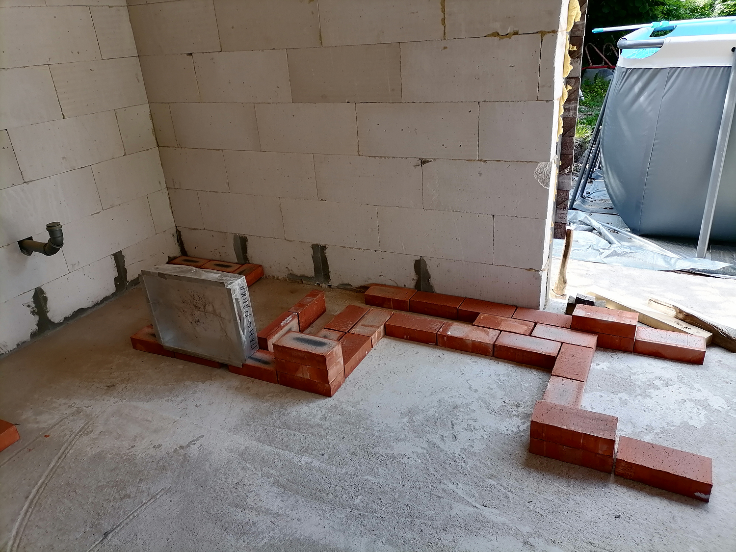 Конструкция в основе выполнена из строительного кирпича с последующей облицовкой элементами из темно-серого ригельного клинкера.