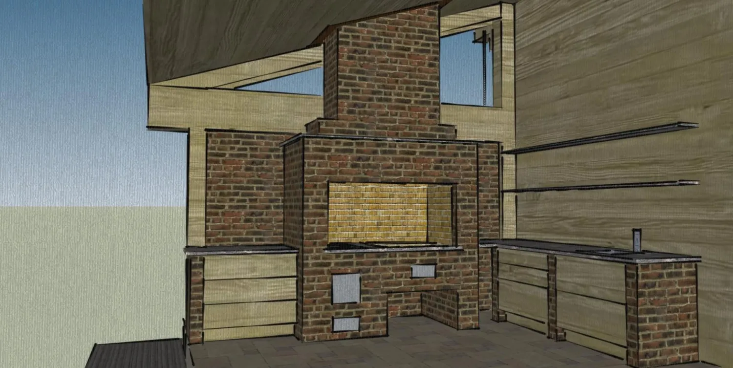 Проект барбекю комплекса углового с мангалом казаном столешницей мойкой