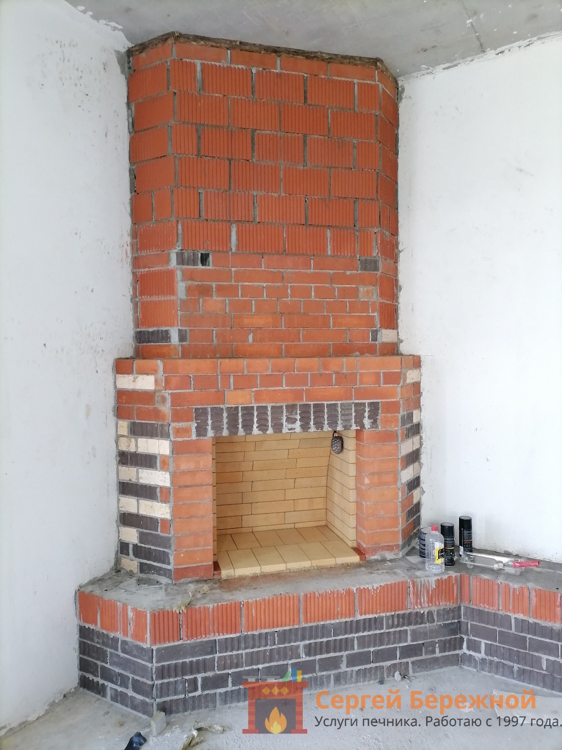 Кирпич, по большей части, был взят из остатков с постройки дома. Для обкладки дымохода на втором этаже, также были применены имеющиеся блоки.