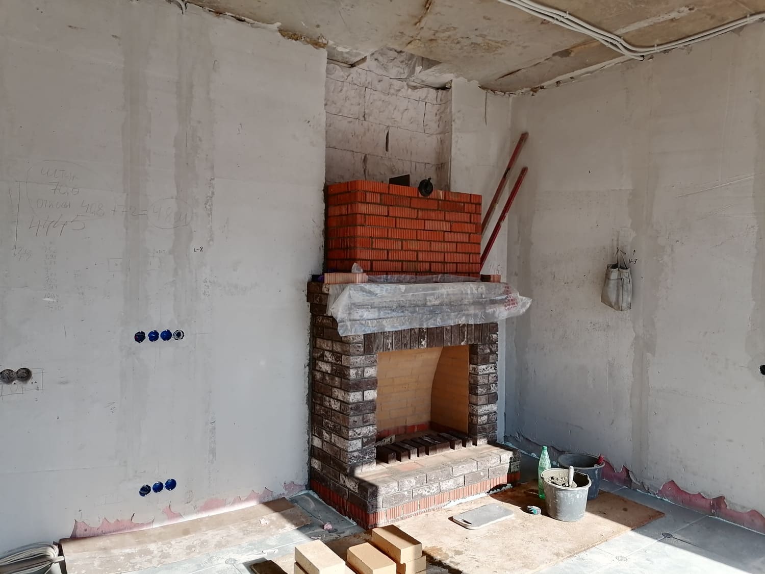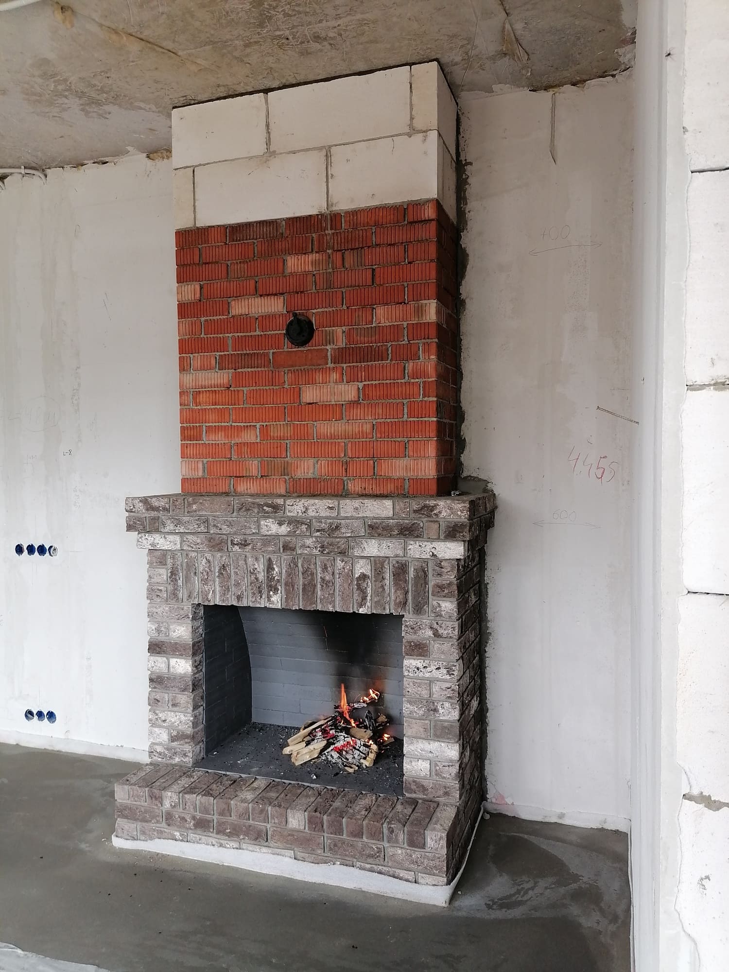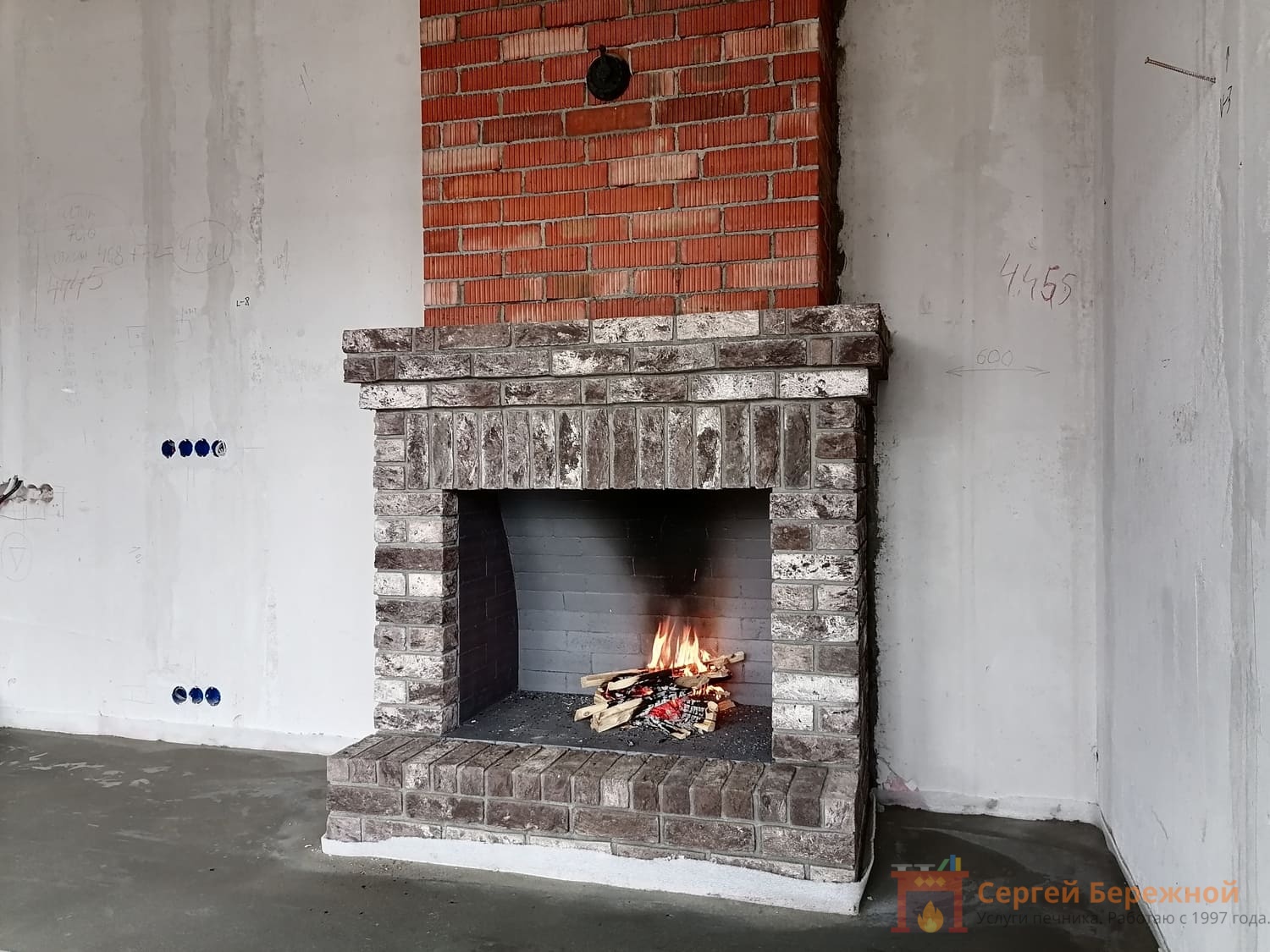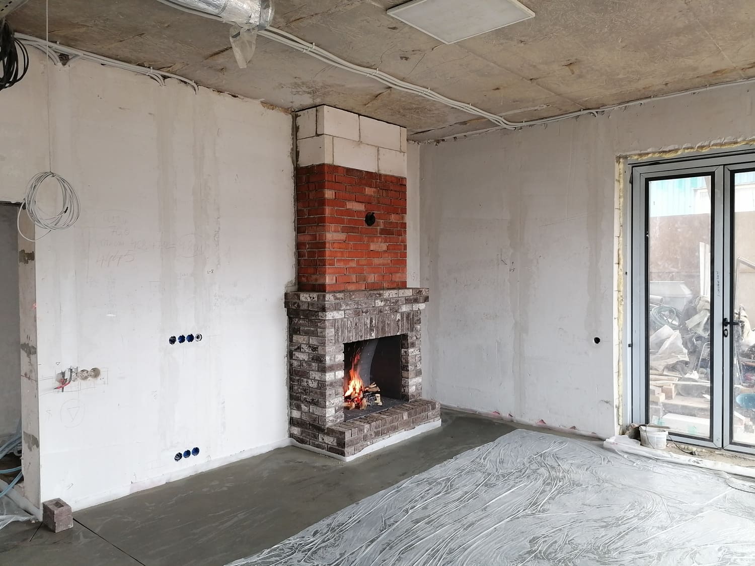 Камин построен в новом 2-х этажном жилом доме в помещении кухни-гостиной.