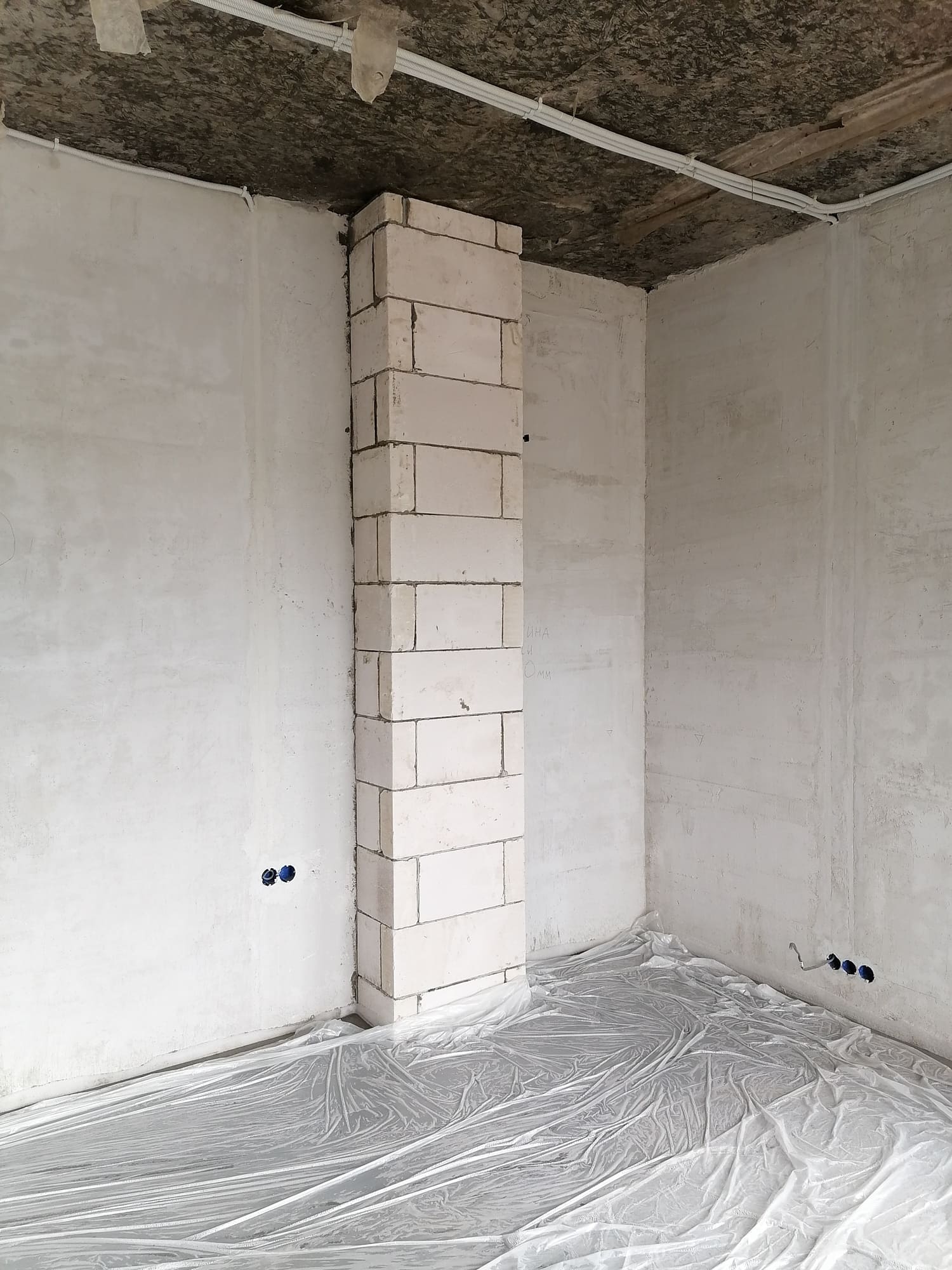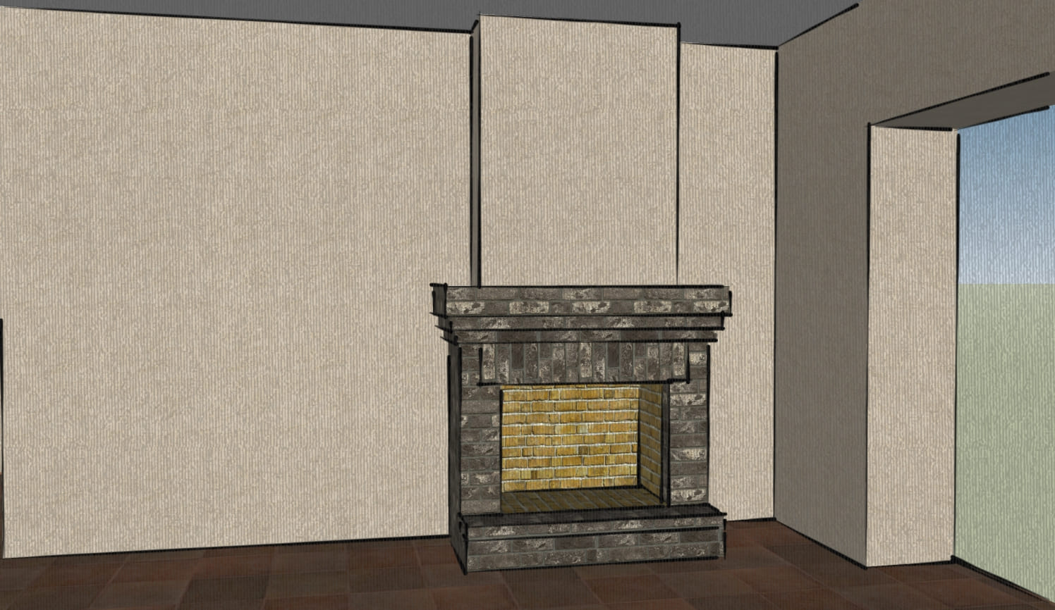 Верх камина будет заштукатурен и покрашен в один цвет со стенами.