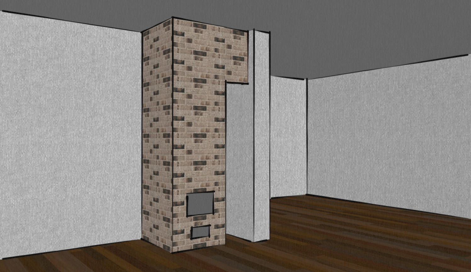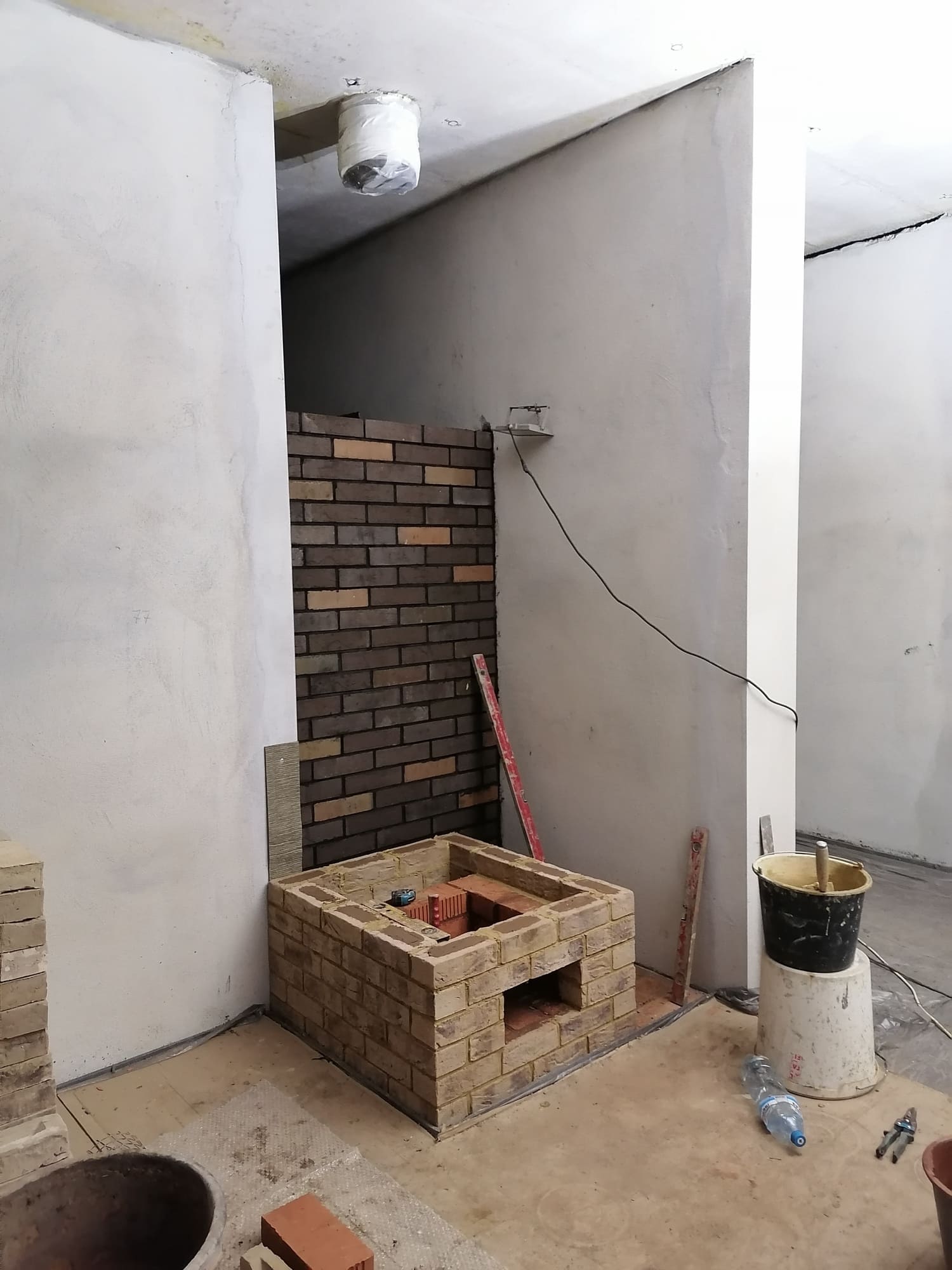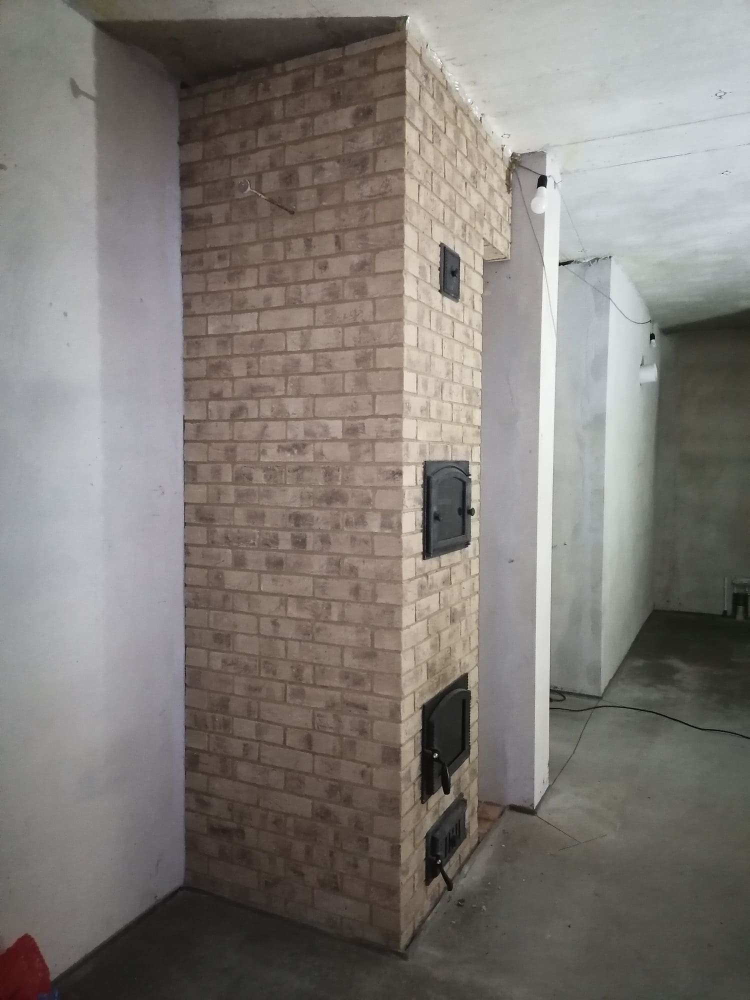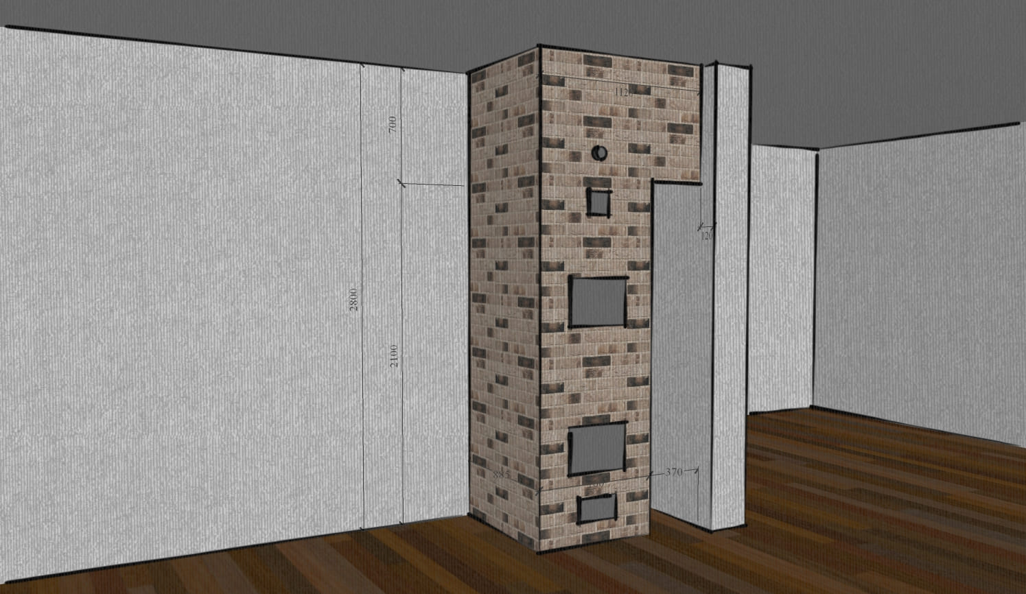 Печь выложена в помещении кухни-гостиной. Имеет декоративный характер, но из-за размеров кирпича очень быстро прогревается. Наличие духовки позволяет готовить и разогревать пищу.