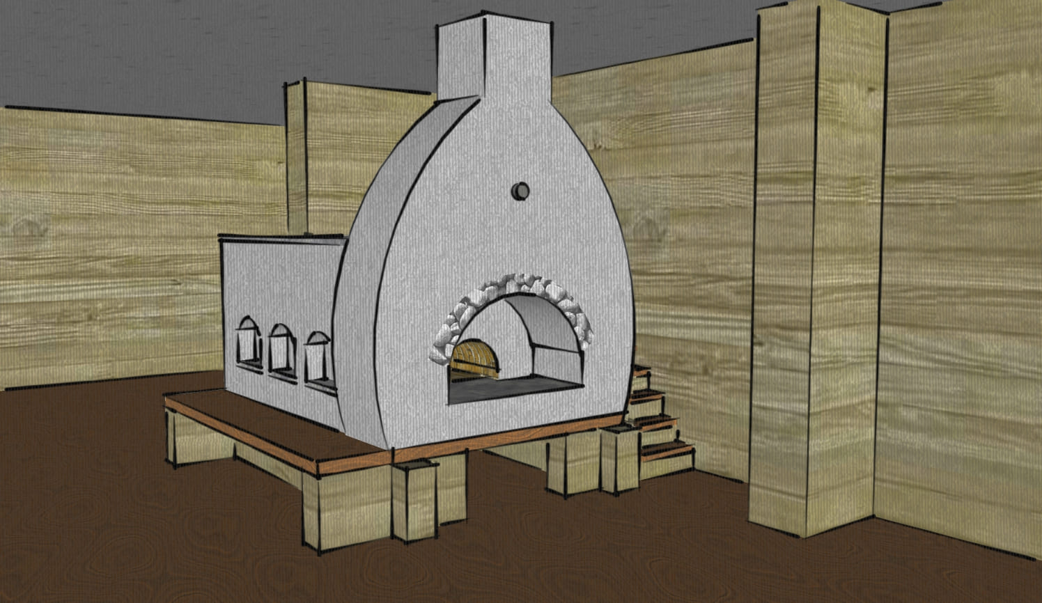 К разработке эскиза был привлечен профессиональный дизайнер и путем нескольких приближений конструктива печи к идее, получили интересный вариант.