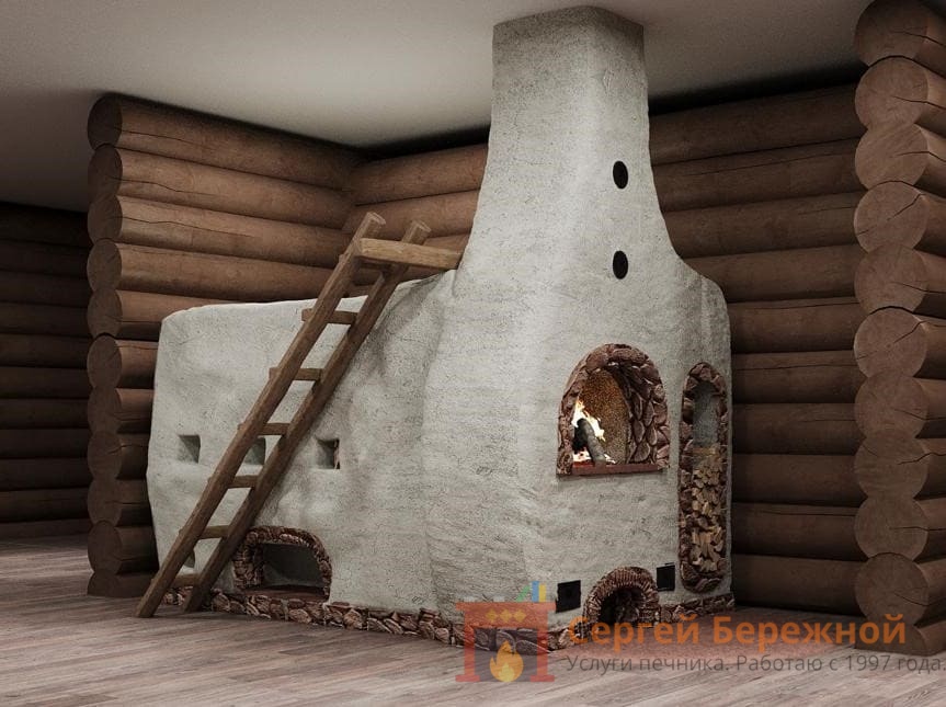 Заказчик сразу вышел с идеей печи из сказки, но при этом она должна по-максимуму обогревать здание и иметь полноценную лежанку.